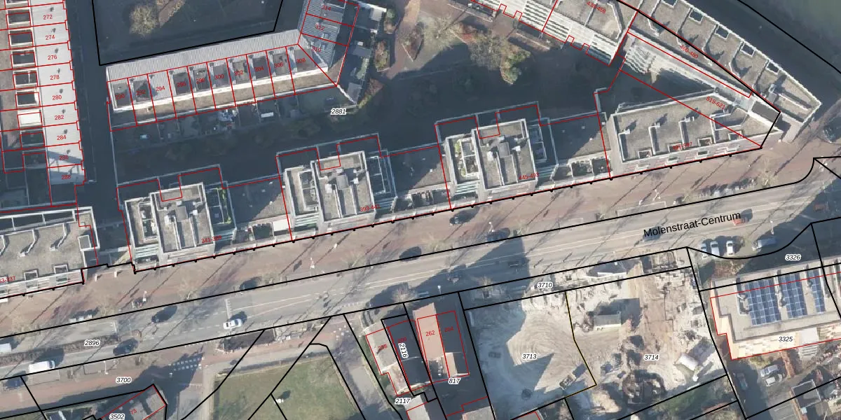 Het perceel waarop Molenstraat-Centrum 437 staat heeft een oppervlakte van 1,4 ha. Dit is een zeer groot perceel. De perceeloppervlakte wordt geregistreerd door het Kadaster. Gedetailleerde informatie over de maten van dit perceel kunt u vinden in het rapport Kadastrale kaart met maatvoering van Molenstraat-Centrum 437.