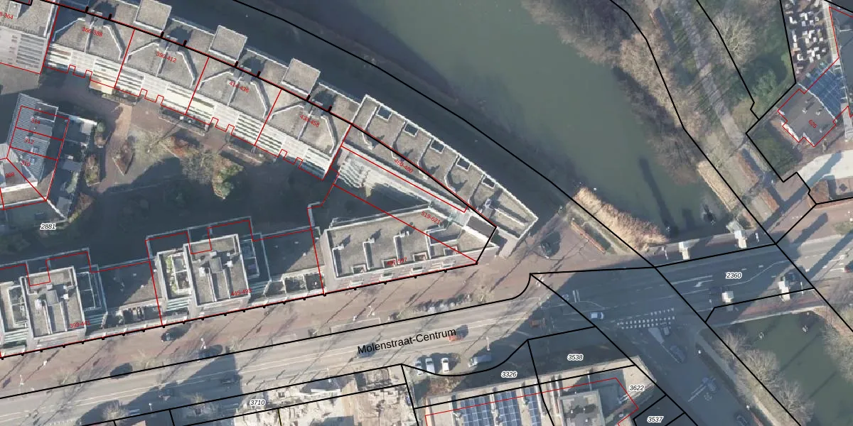Molenstraat-Centrum 563 is gelegen op kadastraal perceel APD01AA2881. Deze kadastrale aanduiding is uniek en wordt gebruikt door het Kadaster om eigendomsrechten en andere zakelijke rechten vast te leggen. Het perceel maakt onderdeel uit van de kadastrale gemeente Apeldoorn.