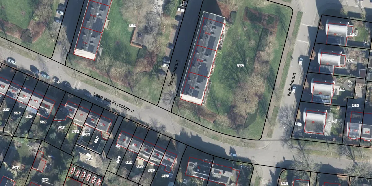 Het perceel waarop Newtonstraat 2 staat heeft een oppervlakte van 3635 m². Dit is een zeer groot perceel. De perceeloppervlakte wordt geregistreerd door het Kadaster. Gedetailleerde informatie over de maten van dit perceel kunt u vinden in het rapport Kadastrale kaart met maatvoering van Newtonstraat 2.