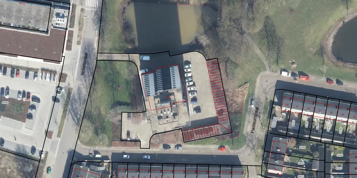 Het perceel waarop Nobelstraat 100 staat heeft een oppervlakte van 2463 m². Dit is een zeer groot perceel. De perceeloppervlakte wordt geregistreerd door het Kadaster. Gedetailleerde informatie over de maten van dit perceel kunt u vinden in het rapport Kadastrale kaart met maatvoering van Nobelstraat 100.
