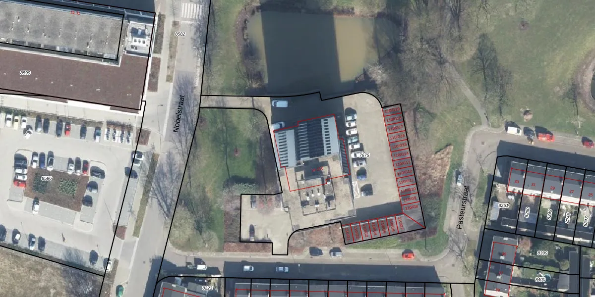 Het perceel waarop Nobelstraat 34 staat heeft een oppervlakte van 2463 m². Dit is een zeer groot perceel. De perceeloppervlakte wordt geregistreerd door het Kadaster. Gedetailleerde informatie over de maten van dit perceel kunt u vinden in het rapport Kadastrale kaart met maatvoering van Nobelstraat 34.