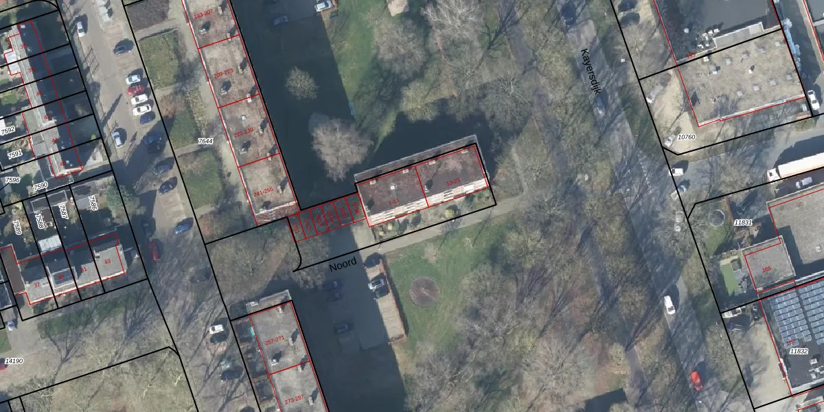 Noord 1 is gelegen op kadastraal perceel APD01L7644. Deze kadastrale aanduiding is uniek en wordt gebruikt door het Kadaster om eigendomsrechten en andere zakelijke rechten vast te leggen. Het perceel maakt onderdeel uit van de kadastrale gemeente Apeldoorn.