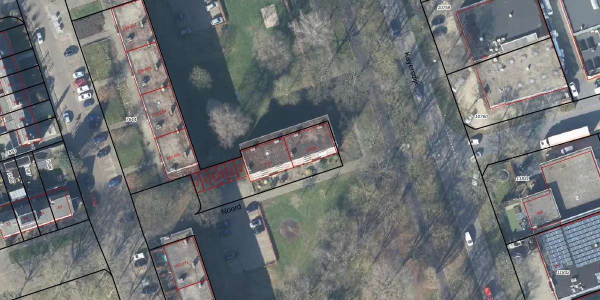 Noord 19 is gelegen op kadastraal perceel APD01L7644. Deze kadastrale aanduiding is uniek en wordt gebruikt door het Kadaster om eigendomsrechten en andere zakelijke rechten vast te leggen. Het perceel maakt onderdeel uit van de kadastrale gemeente Apeldoorn.