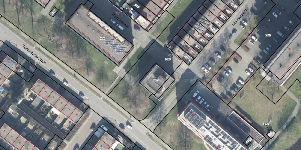 Het perceel waarop Normastraat 161 staat heeft een oppervlakte van 222 m². Dit is een middelgroot perceel. De perceeloppervlakte wordt geregistreerd door het Kadaster. Gedetailleerde informatie over de maten van dit perceel kunt u vinden in het rapport Kadastrale kaart met maatvoering van Normastraat 161.