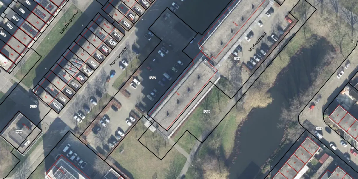 Het perceel waarop Normastraat 25 staat heeft een oppervlakte van 2682 m². Dit is een zeer groot perceel. De perceeloppervlakte wordt geregistreerd door het Kadaster. Gedetailleerde informatie over de maten van dit perceel kunt u vinden in het rapport Kadastrale kaart met maatvoering van Normastraat 25.