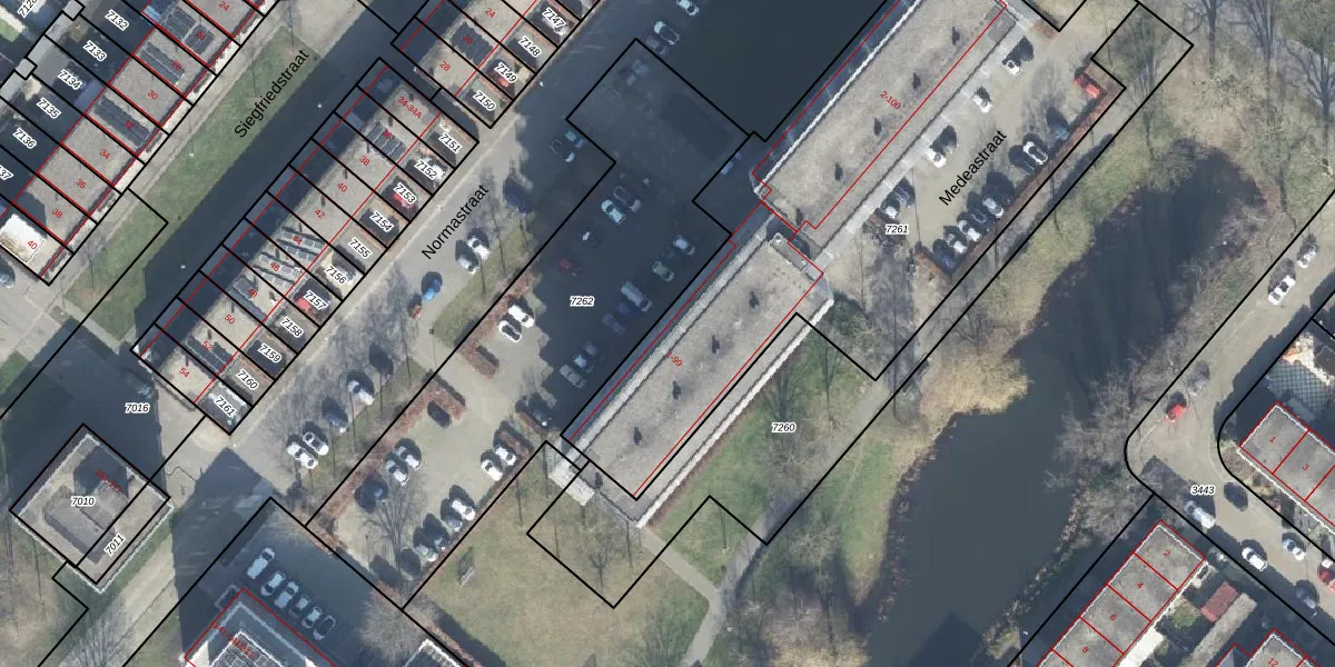 Het perceel waarop Normastraat 5 staat heeft een oppervlakte van 2682 m². Dit is een zeer groot perceel. De perceeloppervlakte wordt geregistreerd door het Kadaster. Gedetailleerde informatie over de maten van dit perceel kunt u vinden in het rapport Kadastrale kaart met maatvoering van Normastraat 5.