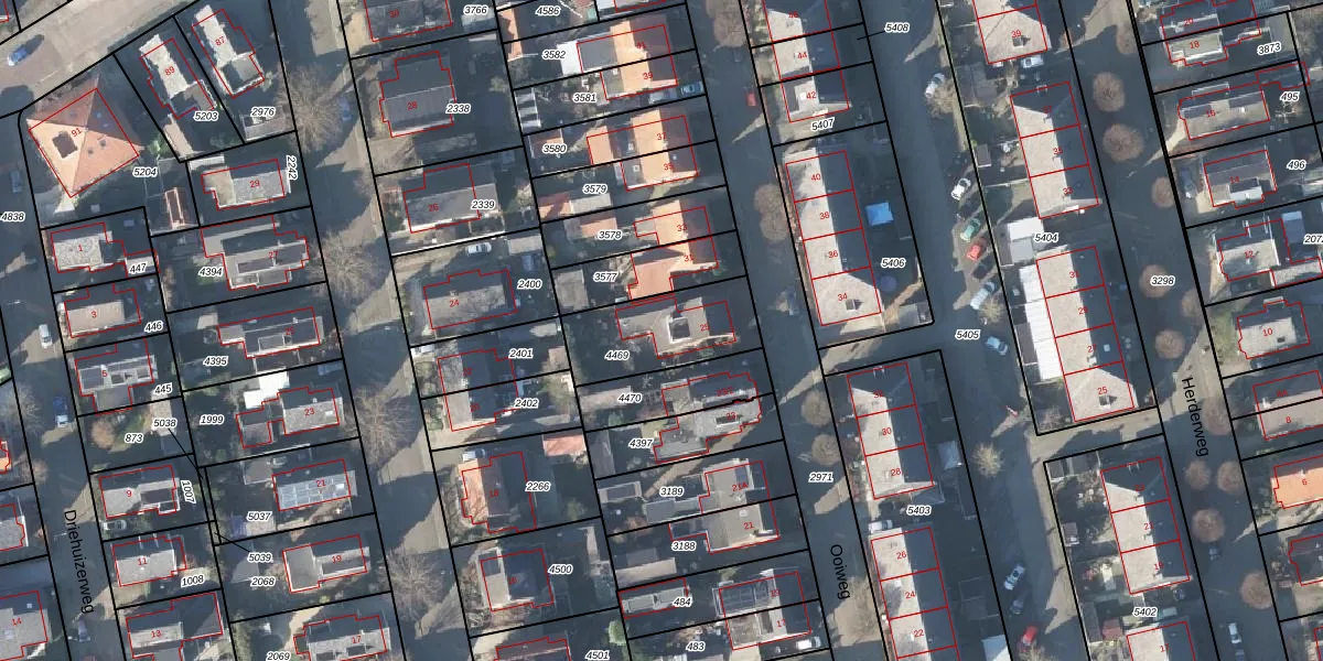Het perceel waarop Ooiweg 25 staat heeft een oppervlakte van 322 m². Dit is een groot perceel. De perceeloppervlakte wordt geregistreerd door het Kadaster. Gedetailleerde informatie over de maten van dit perceel kunt u vinden in het rapport Kadastrale kaart met maatvoering van Ooiweg 25.