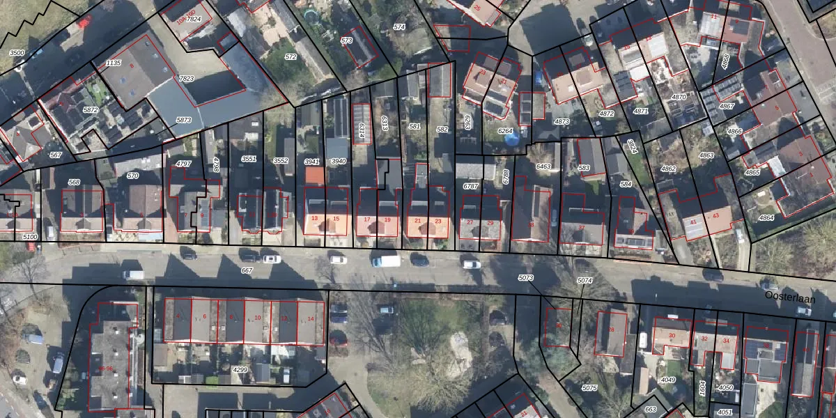 Het perceel waarop Oosterlaan 21 staat heeft een oppervlakte van 270 m². Dit is een middelgroot perceel. De perceeloppervlakte wordt geregistreerd door het Kadaster. Gedetailleerde informatie over de maten van dit perceel kunt u vinden in het rapport Kadastrale kaart met maatvoering van Oosterlaan 21.