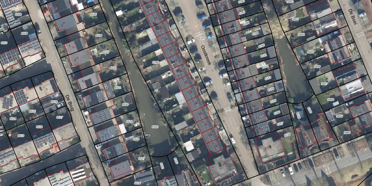 Het perceel waarop Oostkreek 21 staat heeft een oppervlakte van 3993 m². Dit is een zeer groot perceel. De perceeloppervlakte wordt geregistreerd door het Kadaster. Gedetailleerde informatie over de maten van dit perceel kunt u vinden in het rapport Kadastrale kaart met maatvoering van Oostkreek 21.