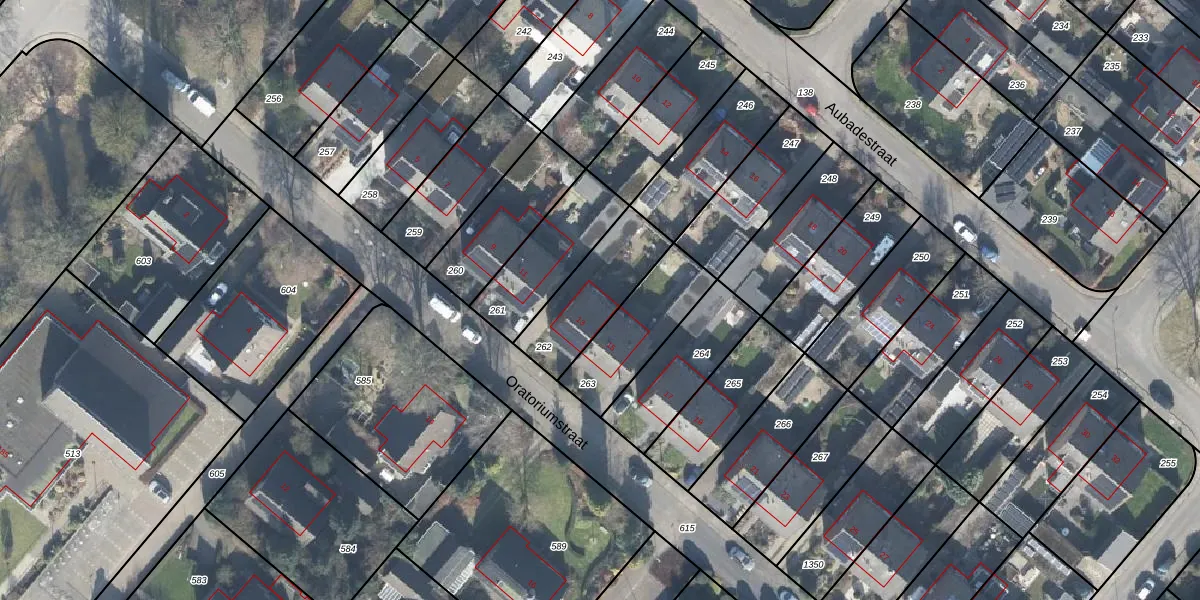 Het perceel waarop Oratoriumstraat 13 staat heeft een oppervlakte van 286 m². Dit is een middelgroot perceel. De perceeloppervlakte wordt geregistreerd door het Kadaster. Gedetailleerde informatie over de maten van dit perceel kunt u vinden in het rapport Kadastrale kaart met maatvoering van Oratoriumstraat 13.