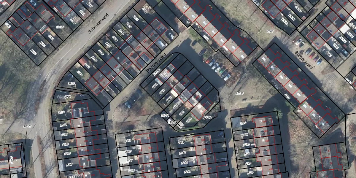 Gebruik de zoekbalk of klik op een perceel voor informatie over de adressen binnen dit perceel.
