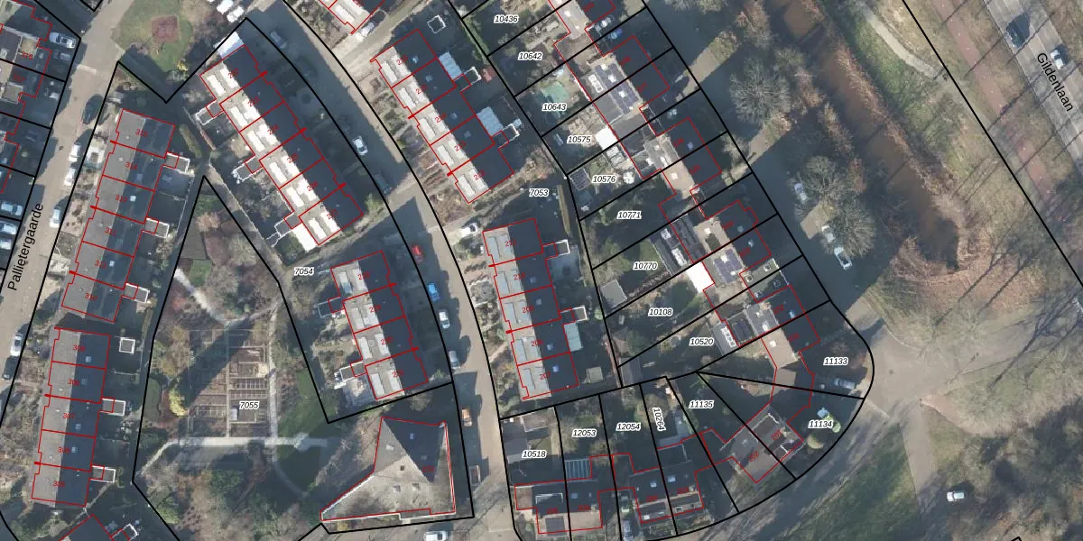 Het perceel waarop Pallietergaarde 210 staat heeft een oppervlakte van 2705 m². Dit is een zeer groot perceel. De perceeloppervlakte wordt geregistreerd door het Kadaster. Gedetailleerde informatie over de maten van dit perceel kunt u vinden in het rapport Kadastrale kaart met maatvoering van Pallietergaarde 210.