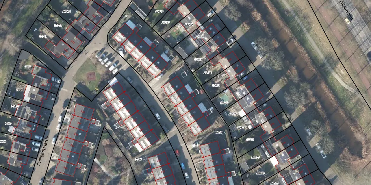 Het perceel waarop Pallietergaarde 215 staat heeft een oppervlakte van 2705 m². Dit is een zeer groot perceel. De perceeloppervlakte wordt geregistreerd door het Kadaster. Gedetailleerde informatie over de maten van dit perceel kunt u vinden in het rapport Kadastrale kaart met maatvoering van Pallietergaarde 215.