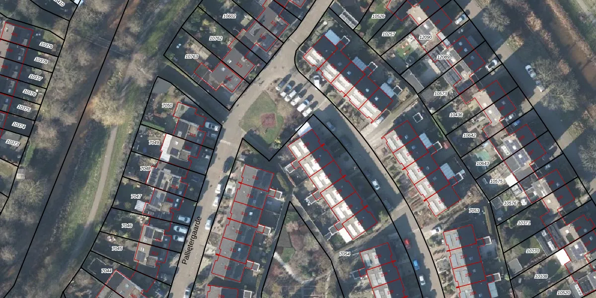 Het perceel waarop Pallietergaarde 222 staat heeft een oppervlakte van 4300 m². Dit is een zeer groot perceel. De perceeloppervlakte wordt geregistreerd door het Kadaster. Gedetailleerde informatie over de maten van dit perceel kunt u vinden in het rapport Kadastrale kaart met maatvoering van Pallietergaarde 222.