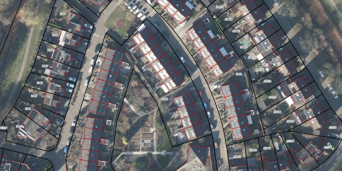 Het perceel waarop Pallietergaarde 227 staat heeft een oppervlakte van 4300 m². Dit is een zeer groot perceel. De perceeloppervlakte wordt geregistreerd door het Kadaster. Gedetailleerde informatie over de maten van dit perceel kunt u vinden in het rapport Kadastrale kaart met maatvoering van Pallietergaarde 227.