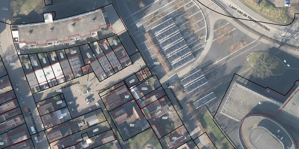 Gebruik de zoekbalk of klik op een perceel voor informatie over de adressen binnen dit perceel.