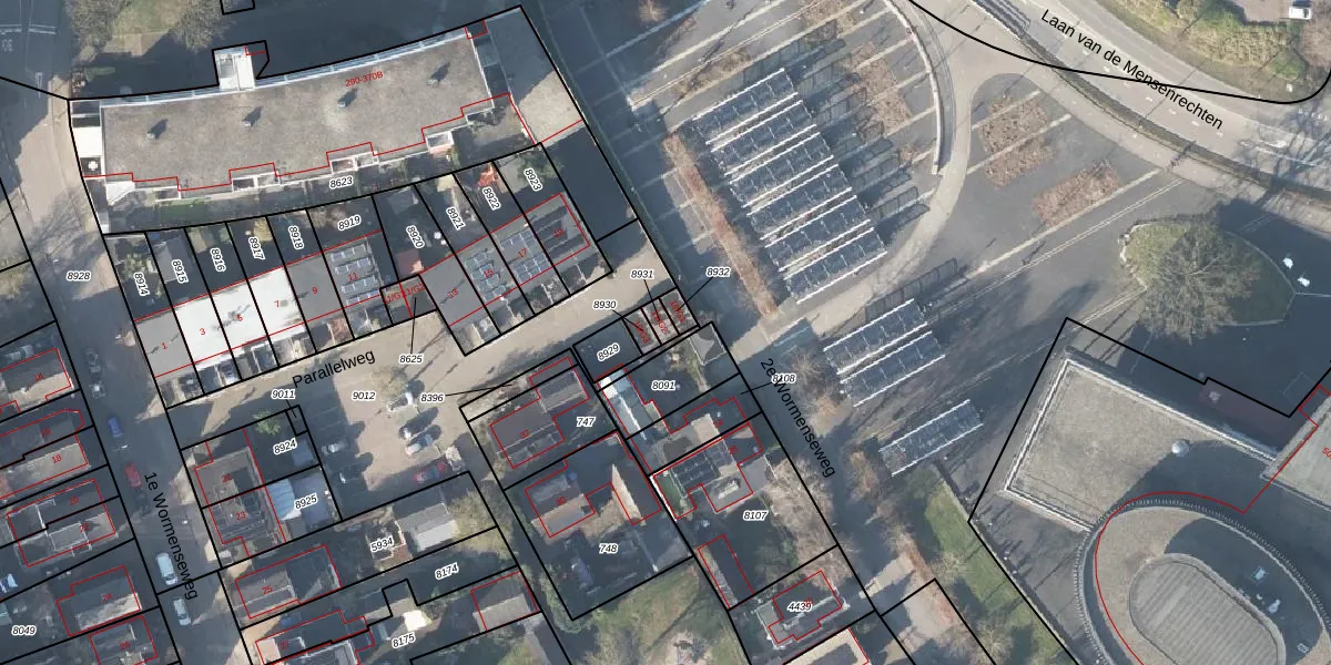Gebruik de zoekbalk of klik op een perceel voor informatie over de adressen binnen dit perceel.