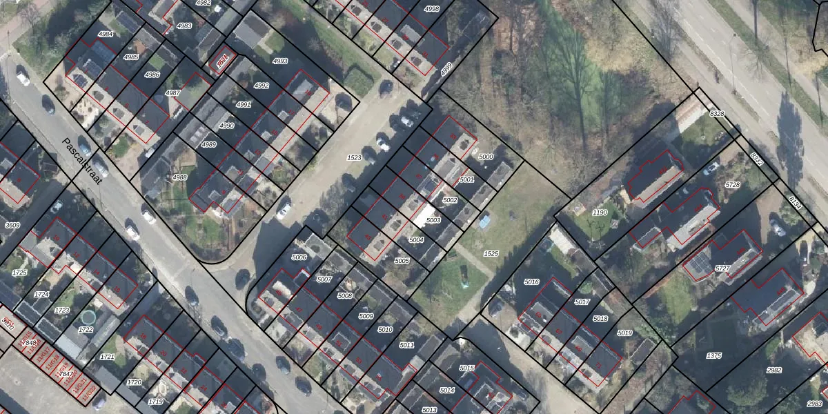 Het perceel waarop Pascalstraat 39 staat heeft een oppervlakte van 159 m². Dit is een middelgroot perceel. De perceeloppervlakte wordt geregistreerd door het Kadaster. Gedetailleerde informatie over de maten van dit perceel kunt u vinden in het rapport Kadastrale kaart met maatvoering van Pascalstraat 39.
