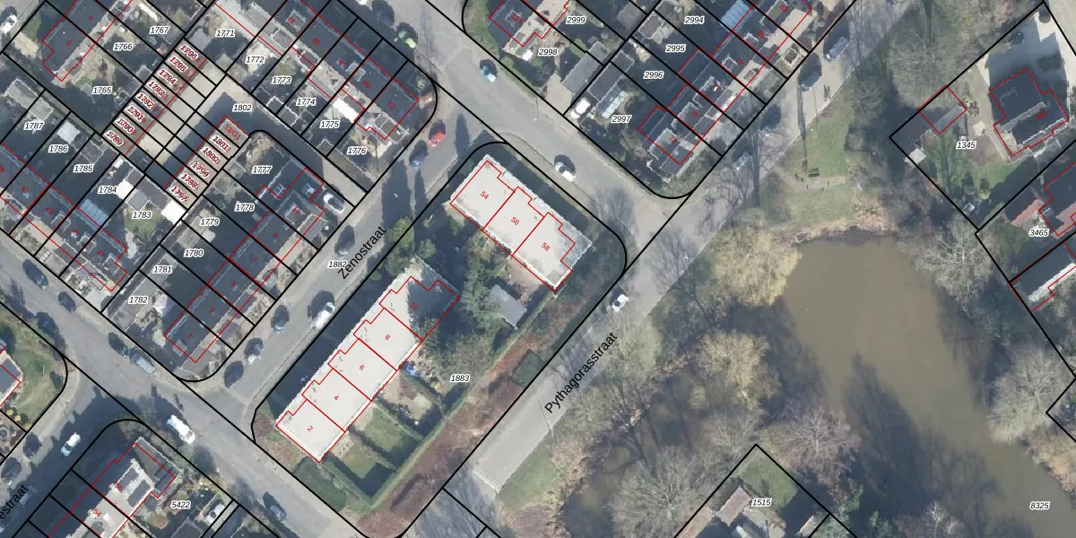 Het perceel waarop Pascalstraat 58 staat heeft een oppervlakte van 2585 m². Dit is een zeer groot perceel. De perceeloppervlakte wordt geregistreerd door het Kadaster. Gedetailleerde informatie over de maten van dit perceel kunt u vinden in het rapport Kadastrale kaart met maatvoering van Pascalstraat 58.