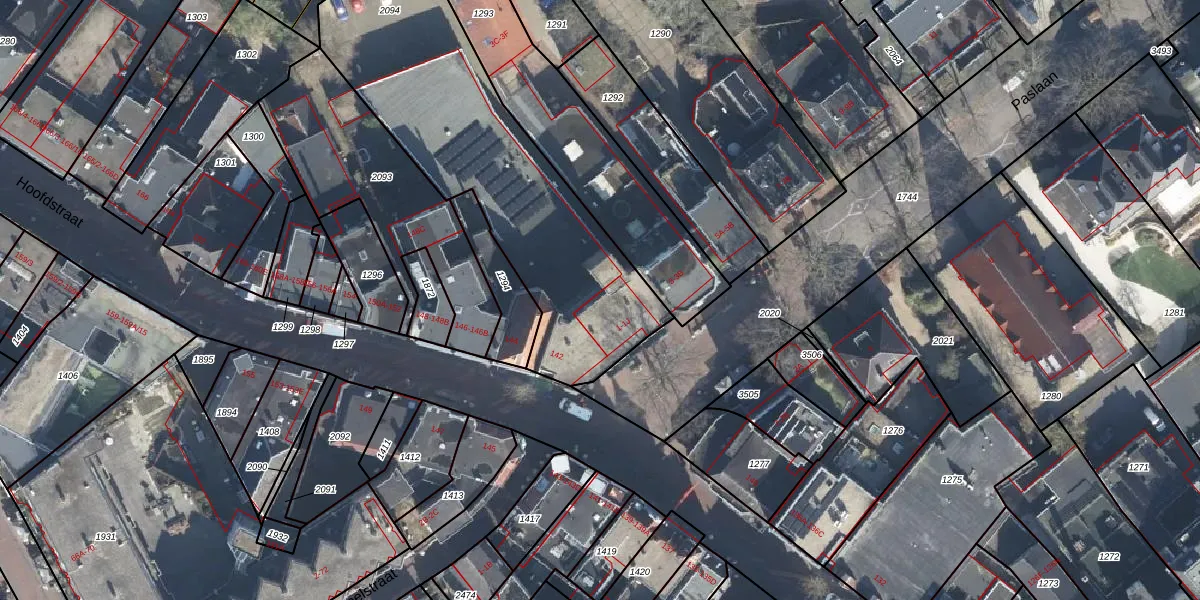 Het perceel waarop Paslaan 1-H staat heeft een oppervlakte van 1402 m². Dit is een zeer groot perceel. De perceeloppervlakte wordt geregistreerd door het Kadaster. Gedetailleerde informatie over de maten van dit perceel kunt u vinden in het rapport Kadastrale kaart met maatvoering van Paslaan 1-H.