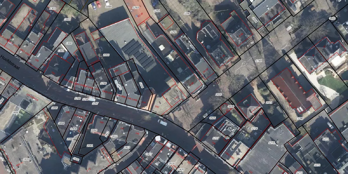 Het perceel waarop Paslaan 1-J staat heeft een oppervlakte van 1402 m². Dit is een zeer groot perceel. De perceeloppervlakte wordt geregistreerd door het Kadaster. Gedetailleerde informatie over de maten van dit perceel kunt u vinden in het rapport Kadastrale kaart met maatvoering van Paslaan 1-J.