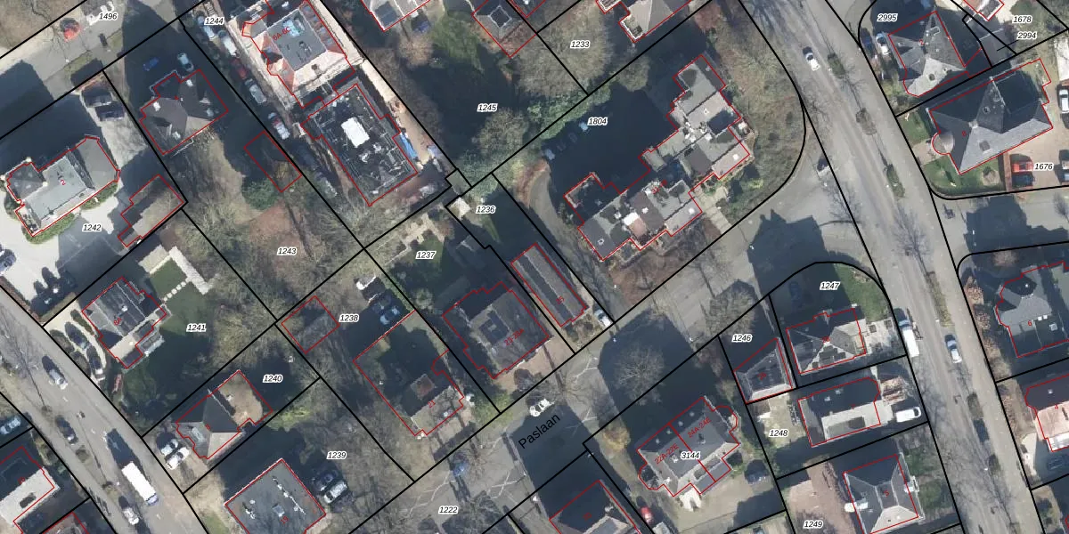 Het perceel waarop Paslaan 25 staat heeft een oppervlakte van 348 m². Dit is een groot perceel. De perceeloppervlakte wordt geregistreerd door het Kadaster. Gedetailleerde informatie over de maten van dit perceel kunt u vinden in het rapport Kadastrale kaart met maatvoering van Paslaan 25.