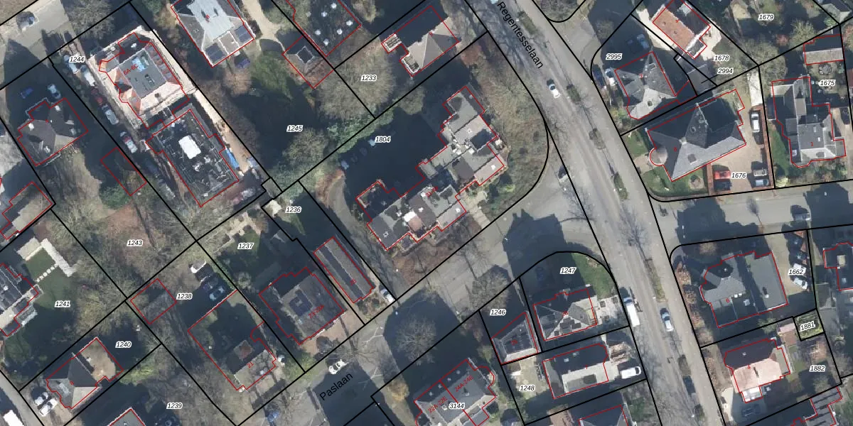 Het perceel waarop Paslaan 33 staat heeft een oppervlakte van 1936 m². Dit is een zeer groot perceel. De perceeloppervlakte wordt geregistreerd door het Kadaster. Gedetailleerde informatie over de maten van dit perceel kunt u vinden in het rapport Kadastrale kaart met maatvoering van Paslaan 33.