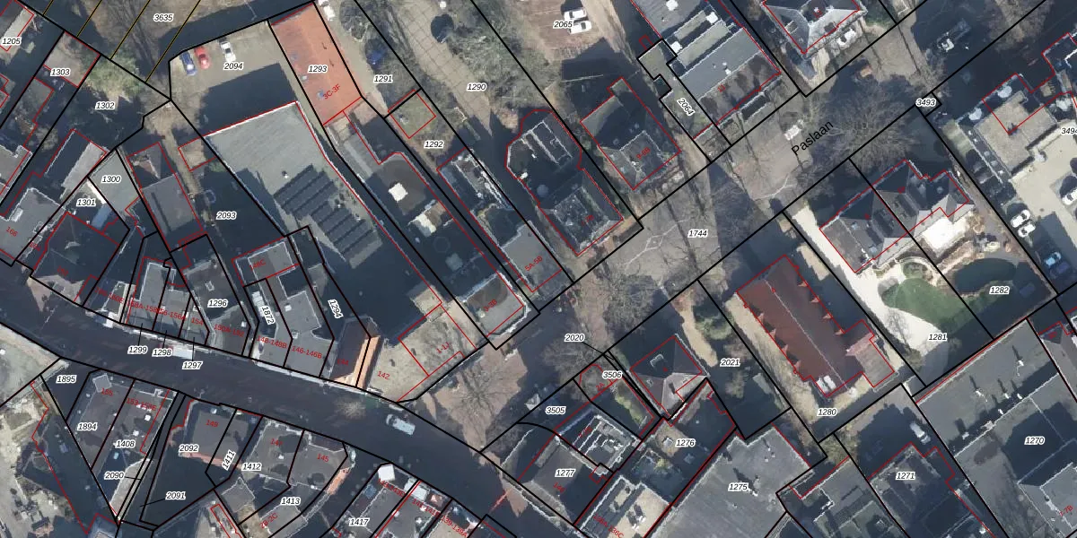 Het perceel waarop Paslaan 5-A staat heeft een oppervlakte van 400 m². Dit is een groot perceel. De perceeloppervlakte wordt geregistreerd door het Kadaster. Gedetailleerde informatie over de maten van dit perceel kunt u vinden in het rapport Kadastrale kaart met maatvoering van Paslaan 5-A.