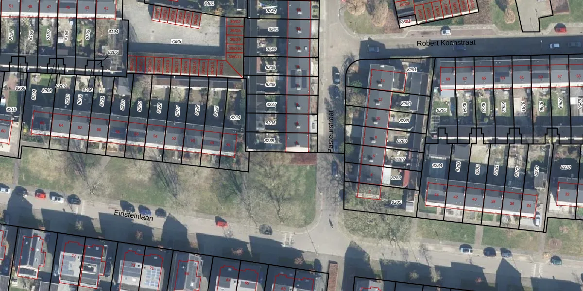 Het perceel waarop Pasteurstraat 1 staat heeft een oppervlakte van 163 m². Dit is een middelgroot perceel. De perceeloppervlakte wordt geregistreerd door het Kadaster. Gedetailleerde informatie over de maten van dit perceel kunt u vinden in het rapport Kadastrale kaart met maatvoering van Pasteurstraat 1.