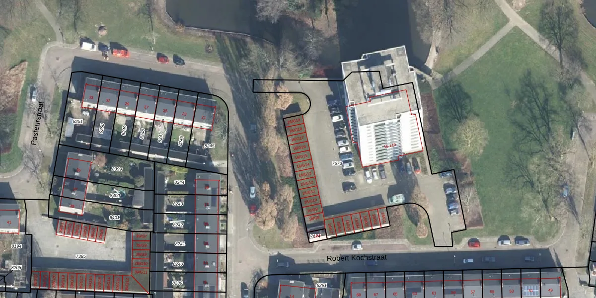 Pasteurstraat 16-G16 is gelegen op kadastraal perceel APD01I7673. Deze kadastrale aanduiding is uniek en wordt gebruikt door het Kadaster om eigendomsrechten en andere zakelijke rechten vast te leggen. Het perceel maakt onderdeel uit van de kadastrale gemeente Apeldoorn.