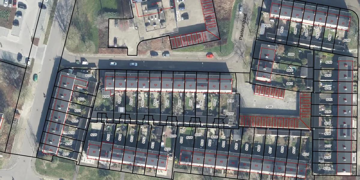 Het perceel waarop Pasteurstraat 49 staat heeft een oppervlakte van 184 m². Dit is een middelgroot perceel. De perceeloppervlakte wordt geregistreerd door het Kadaster. Gedetailleerde informatie over de maten van dit perceel kunt u vinden in het rapport Kadastrale kaart met maatvoering van Pasteurstraat 49.