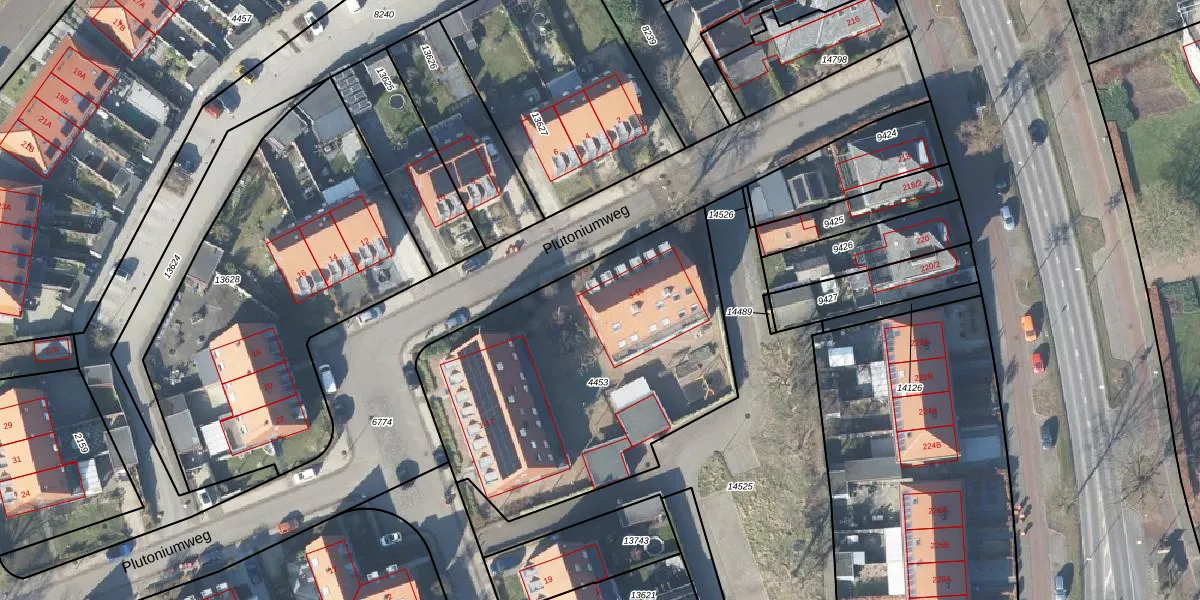 Het perceel waarop Plutoniumweg 15 staat heeft een oppervlakte van 1655 m². Dit is een zeer groot perceel. De perceeloppervlakte wordt geregistreerd door het Kadaster. Gedetailleerde informatie over de maten van dit perceel kunt u vinden in het rapport Kadastrale kaart met maatvoering van Plutoniumweg 15.