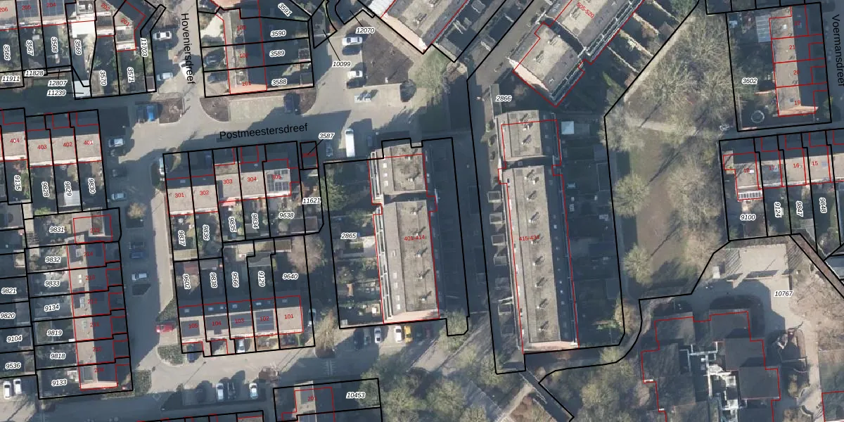 Postmeestersdreef 403 is gelegen op kadastraal perceel APD02AC2865. Deze kadastrale aanduiding is uniek en wordt gebruikt door het Kadaster om eigendomsrechten en andere zakelijke rechten vast te leggen. Het perceel maakt onderdeel uit van de kadastrale gemeente Apeldoorn.
