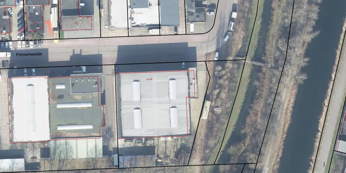 Het perceel waarop Prinsenweide 16 staat heeft een oppervlakte van 2904 m². Dit is een zeer groot perceel. De perceeloppervlakte wordt geregistreerd door het Kadaster. Gedetailleerde informatie over de maten van dit perceel kunt u vinden in het rapport Kadastrale kaart met maatvoering van Prinsenweide 16.