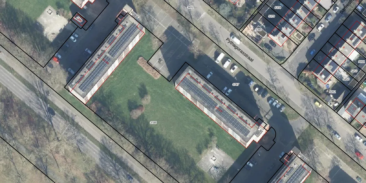 Het perceel waarop Pythagorasstraat 190 staat heeft een oppervlakte van 5330 m². Dit is een zeer groot perceel. De perceeloppervlakte wordt geregistreerd door het Kadaster. Gedetailleerde informatie over de maten van dit perceel kunt u vinden in het rapport Kadastrale kaart met maatvoering van Pythagorasstraat 190.