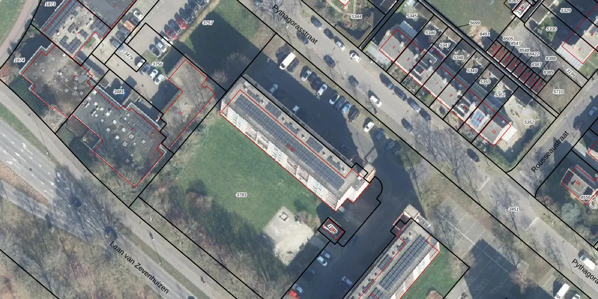 Het perceel waarop Pythagorasstraat 28 staat heeft een oppervlakte van 3210 m². Dit is een zeer groot perceel. De perceeloppervlakte wordt geregistreerd door het Kadaster. Gedetailleerde informatie over de maten van dit perceel kunt u vinden in het rapport Kadastrale kaart met maatvoering van Pythagorasstraat 28.
