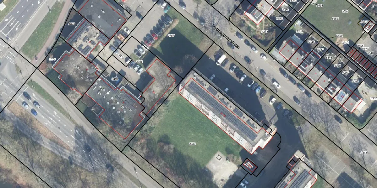 Het perceel waarop Pythagorasstraat 58 staat heeft een oppervlakte van 3210 m². Dit is een zeer groot perceel. De perceeloppervlakte wordt geregistreerd door het Kadaster. Gedetailleerde informatie over de maten van dit perceel kunt u vinden in het rapport Kadastrale kaart met maatvoering van Pythagorasstraat 58.