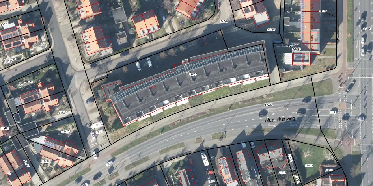 Het perceel waarop Radiumweg 103 staat heeft een oppervlakte van 2994 m². Dit is een zeer groot perceel. De perceeloppervlakte wordt geregistreerd door het Kadaster. Gedetailleerde informatie over de maten van dit perceel kunt u vinden in het rapport Kadastrale kaart met maatvoering van Radiumweg 103.