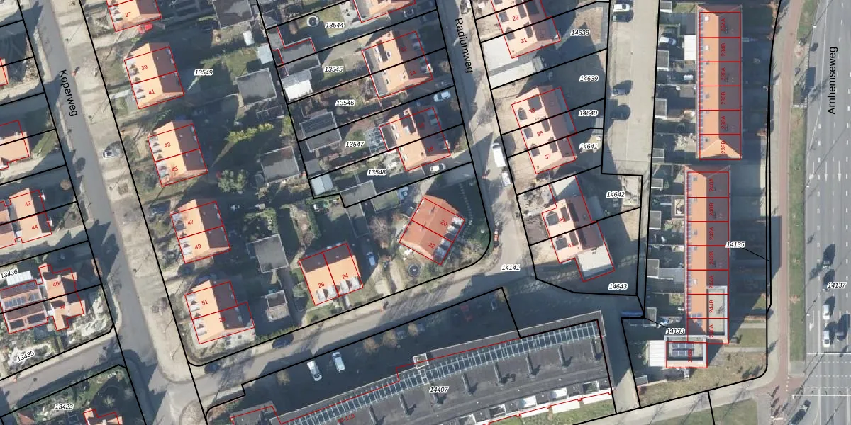 Het perceel waarop Radiumweg 20 staat heeft een oppervlakte van 6383 m². Dit is een zeer groot perceel. De perceeloppervlakte wordt geregistreerd door het Kadaster. Gedetailleerde informatie over de maten van dit perceel kunt u vinden in het rapport Kadastrale kaart met maatvoering van Radiumweg 20.