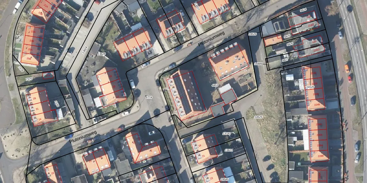 Het perceel waarop Radiumweg 5 staat heeft een oppervlakte van 1655 m². Dit is een zeer groot perceel. De perceeloppervlakte wordt geregistreerd door het Kadaster. Gedetailleerde informatie over de maten van dit perceel kunt u vinden in het rapport Kadastrale kaart met maatvoering van Radiumweg 5.