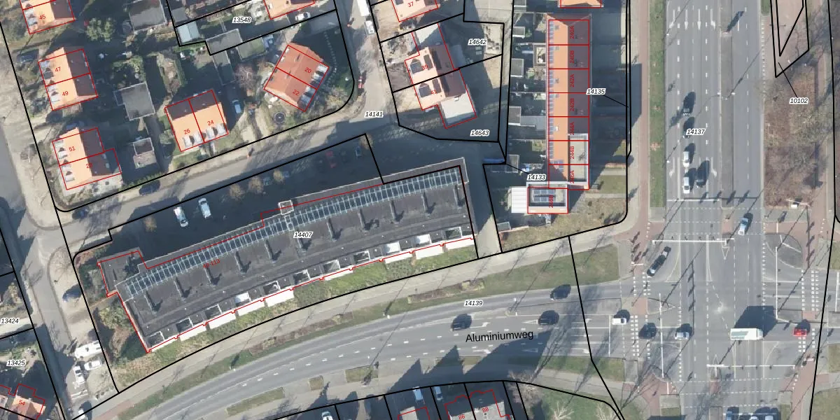 Het perceel waarop Radiumweg 69 staat heeft een oppervlakte van 2994 m². Dit is een zeer groot perceel. De perceeloppervlakte wordt geregistreerd door het Kadaster. Gedetailleerde informatie over de maten van dit perceel kunt u vinden in het rapport Kadastrale kaart met maatvoering van Radiumweg 69.