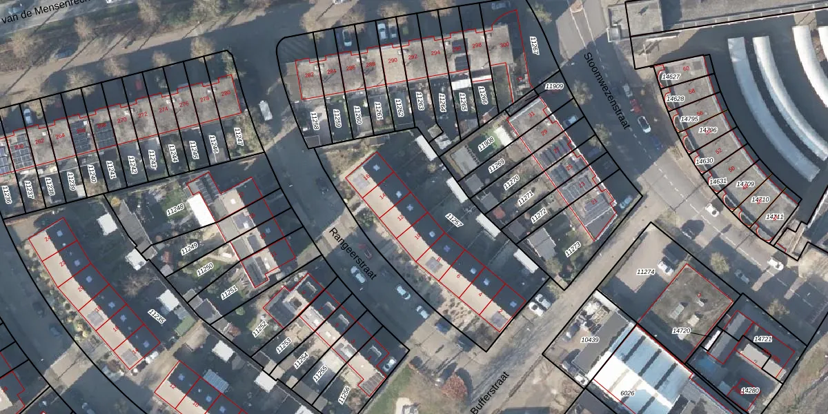 Het perceel waarop Rangeerstraat 12 staat heeft een oppervlakte van 1410 m². Dit is een zeer groot perceel. De perceeloppervlakte wordt geregistreerd door het Kadaster. Gedetailleerde informatie over de maten van dit perceel kunt u vinden in het rapport Kadastrale kaart met maatvoering van Rangeerstraat 12.