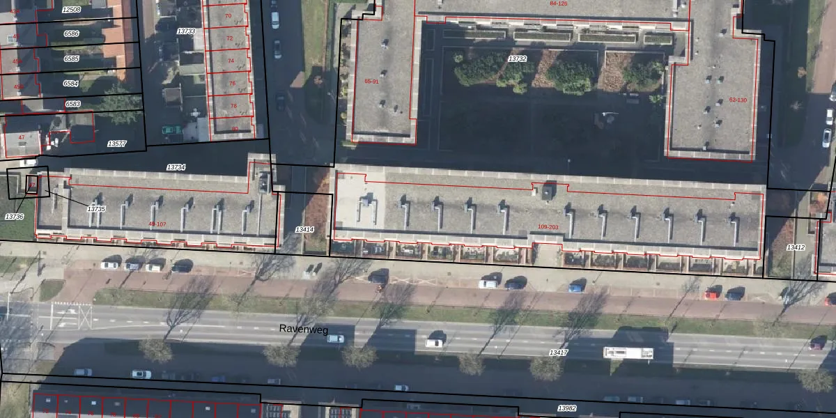 Het perceel waarop Ravenweg 151 staat heeft een oppervlakte van 7473 m². Dit is een zeer groot perceel. De perceeloppervlakte wordt geregistreerd door het Kadaster. Gedetailleerde informatie over de maten van dit perceel kunt u vinden in het rapport Kadastrale kaart met maatvoering van Ravenweg 151.