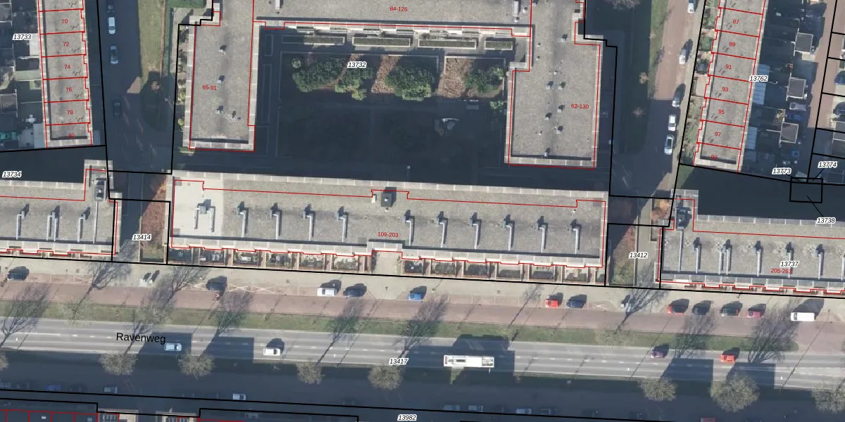 Het perceel waarop Ravenweg 191 staat heeft een oppervlakte van 7473 m². Dit is een zeer groot perceel. De perceeloppervlakte wordt geregistreerd door het Kadaster. Gedetailleerde informatie over de maten van dit perceel kunt u vinden in het rapport Kadastrale kaart met maatvoering van Ravenweg 191.