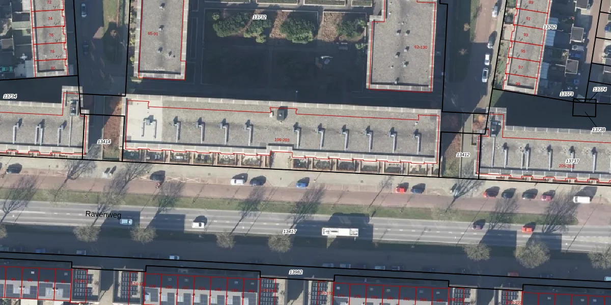 Het perceel waarop Ravenweg 193 staat heeft een oppervlakte van 7473 m². Dit is een zeer groot perceel. De perceeloppervlakte wordt geregistreerd door het Kadaster. Gedetailleerde informatie over de maten van dit perceel kunt u vinden in het rapport Kadastrale kaart met maatvoering van Ravenweg 193.