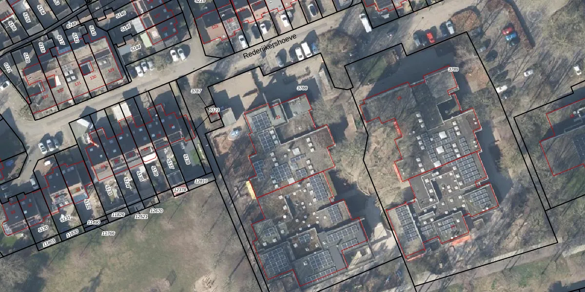 Het perceel waarop Rederijkershoeve 21 staat heeft een oppervlakte van 3595 m². Dit is een zeer groot perceel. De perceeloppervlakte wordt geregistreerd door het Kadaster. Gedetailleerde informatie over de maten van dit perceel kunt u vinden in het rapport Kadastrale kaart met maatvoering van Rederijkershoeve 21.