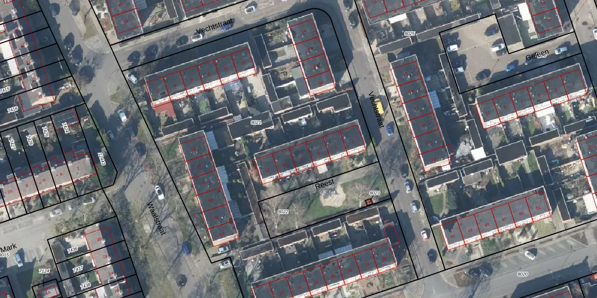 Reest 8 is gelegen op kadastraal perceel APD01L8021. Deze kadastrale aanduiding is uniek en wordt gebruikt door het Kadaster om eigendomsrechten en andere zakelijke rechten vast te leggen. Het perceel maakt onderdeel uit van de kadastrale gemeente Apeldoorn.