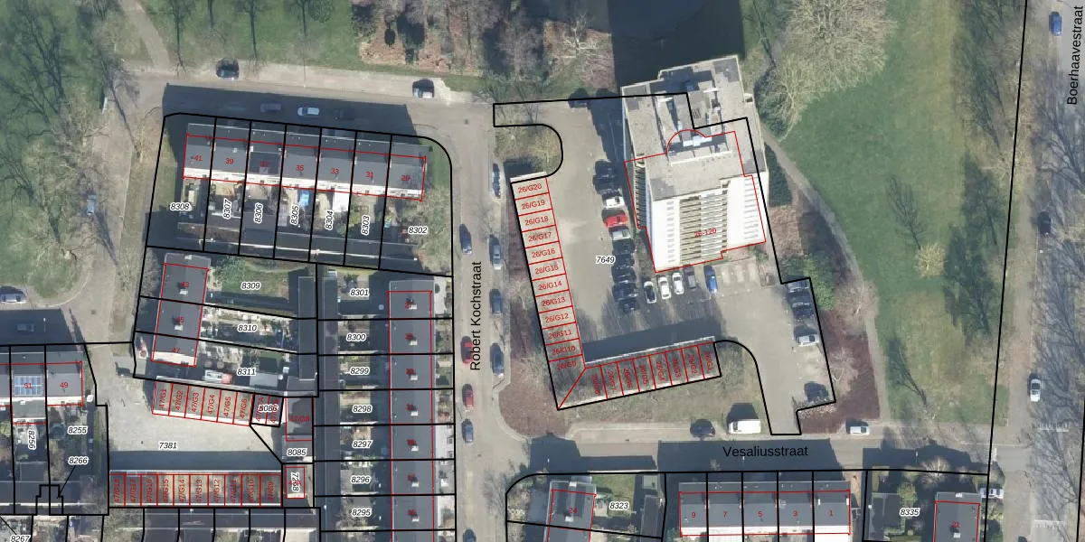 Het perceel waarop Robert Kochstraat 26-G15 staat heeft een oppervlakte van 2465 m². Dit is een zeer groot perceel. De perceeloppervlakte wordt geregistreerd door het Kadaster. Gedetailleerde informatie over de maten van dit perceel kunt u vinden in het rapport Kadastrale kaart met maatvoering van Robert Kochstraat 26-G15.
