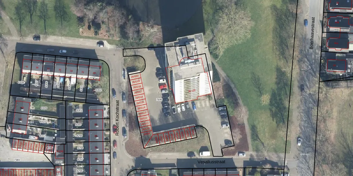 Het perceel waarop Robert Kochstraat 30 staat heeft een oppervlakte van 2465 m². Dit is een zeer groot perceel. De perceeloppervlakte wordt geregistreerd door het Kadaster. Gedetailleerde informatie over de maten van dit perceel kunt u vinden in het rapport Kadastrale kaart met maatvoering van Robert Kochstraat 30.