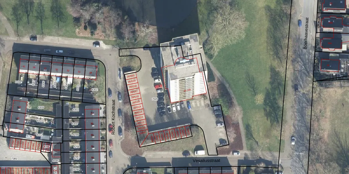 Het perceel waarop Robert Kochstraat 38 staat heeft een oppervlakte van 2465 m². Dit is een zeer groot perceel. De perceeloppervlakte wordt geregistreerd door het Kadaster. Gedetailleerde informatie over de maten van dit perceel kunt u vinden in het rapport Kadastrale kaart met maatvoering van Robert Kochstraat 38.
